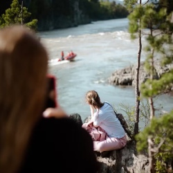 Первой остановкой станет Висячий камень — место древнего водопада, где огромный валун застрял между скал. Затем посещаем Еландинскую штольню — тоннель длиной около 50 метров, прорубленный в горе во время геологических исследований под будущую ГЭС.