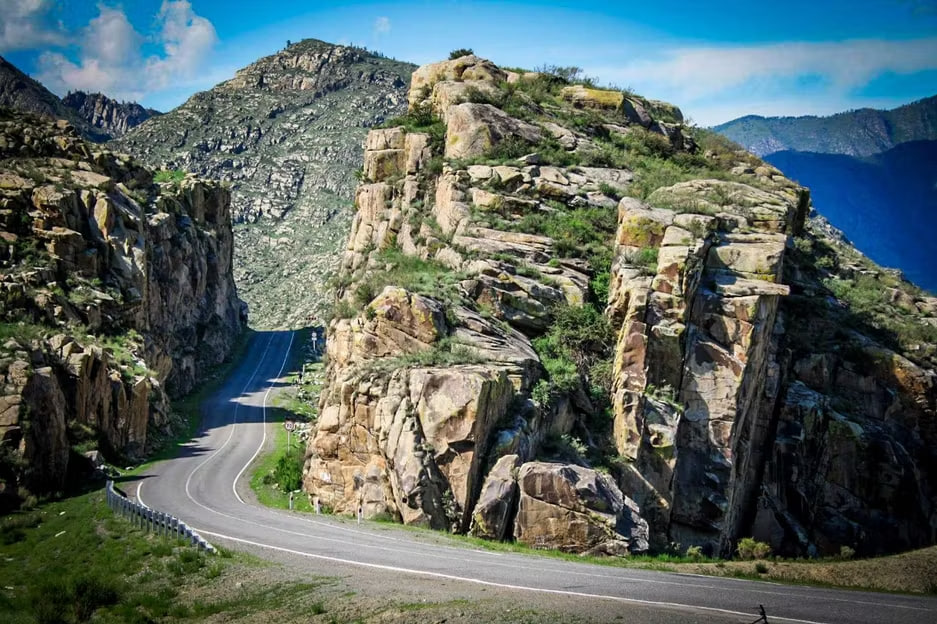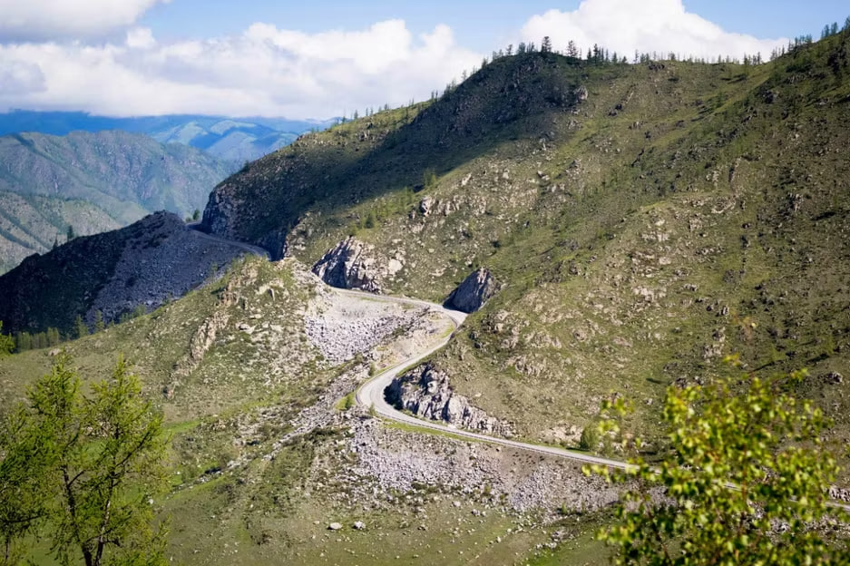 Проезжаем бывшую столицу Республики Алтай — Онгудай, затем поднимаемся на перевал Чике-Таман с серпантином и видами на горные долины. Далее ландшафт заметно меняется: горы становятся скалистее, леса редеют.