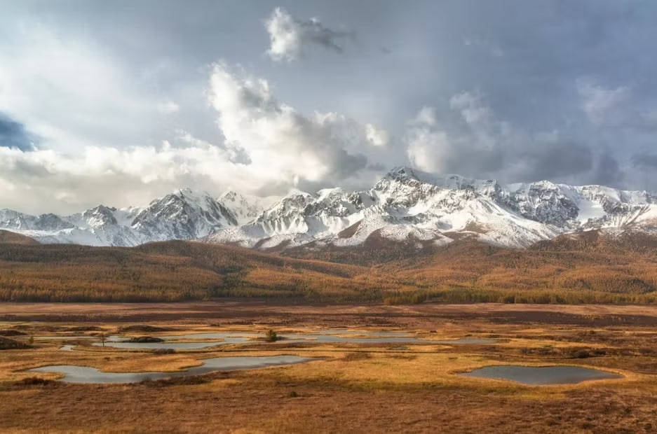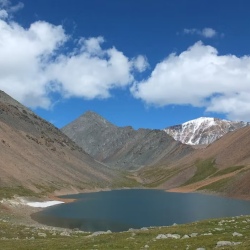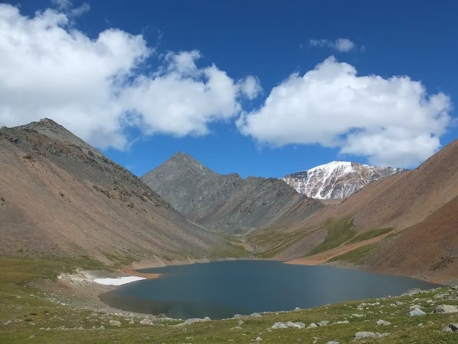 Озеро Горных духов (бессточное): Конечная цель — уникальное высокогорное озеро с берегами рыжего оттенка. С его берегов открывается панорамный вид на Курайскую степь и снежные пики Северо-Чуйского хребта.