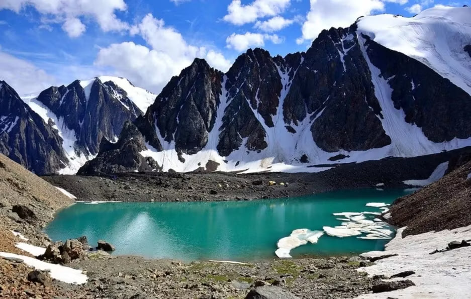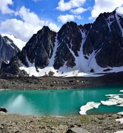 От начальной точки в ущелье нас ждёт пеший маршрут. Несмотря на относительно небольшой километраж (~15 км), предстоит серьёзный набор высоты около 800 метров. Нашей главной целью станет один из старейших ледников региона — ледник Актуру. Вчера мы любовались им издалека, а сегодня у вас будет уникальная возможность почувствовать его холод и мощь, потрогав руками древний лёд. По пути также посетим живописное Голубое озеро.