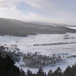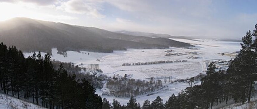 При ясной погоде — вид на Тункинские гольцы и Байкал.