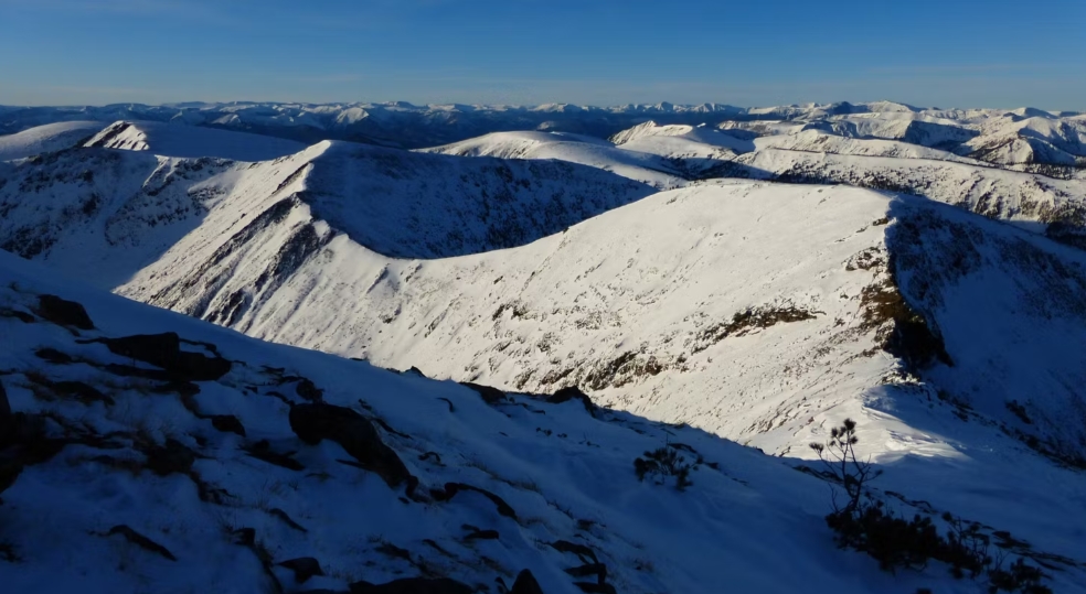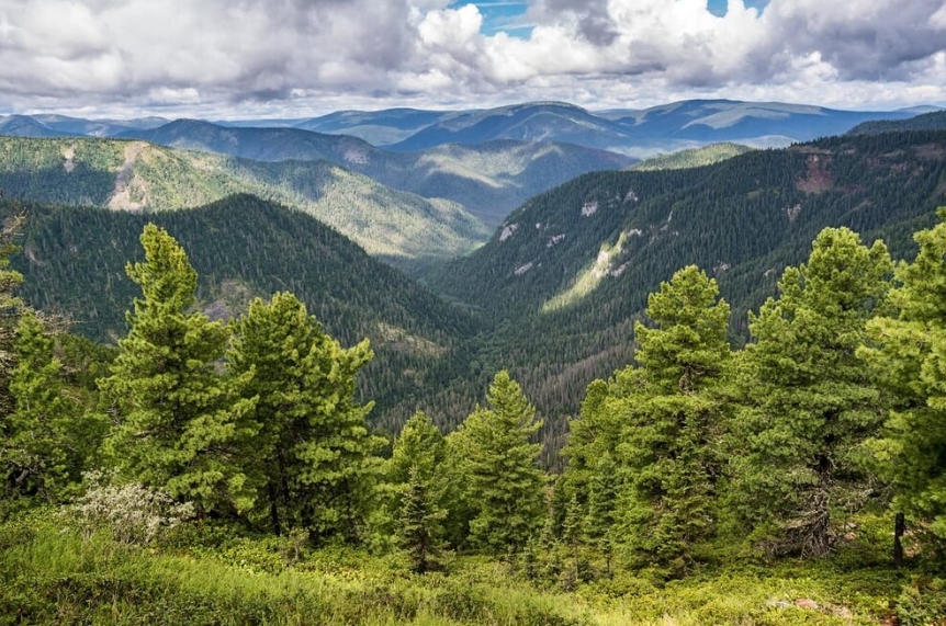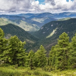С перевала — панорама хребта Хамар-Дабан.