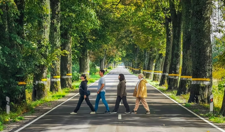 Длинный, но живописный день. Замки: Лабиау в Полесске (один из лучше всего сохранившихся), Лаукен в Саранском (сейчас школа), Рагнит в Немане (пример возрождения), Таплакен в Талпаках (жилой). Прогулка по Советску — город на границе с Литвой: набережная, вид на другой берег, история Тильзитского мира, королева Луиза, сыр Тильзитер. В Немане — кирха меннонитов и память об Эрнсте Тельмане. По пути — типичные для области аллеи и пейзажи.
