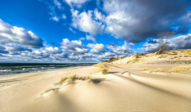 Паромная переправа из Балтийска на Балтийскую косу — менее известную и куда более тихую, чем Куршская. Исследуем: немецкий гидроаэродром Нойтиф (сохранившиеся здания, ангары, взлётно-посадочная полоса советского периода), музей «Старый Люнет», бункеры немецкой артиллерийской батареи, утонувшие в дюнах, руины форта Западный, который постепенно съедает море, и южный мол Балтийского пролива. Атмосфера места, отделённого проливом даже от самого эксклава, — непередаваема.