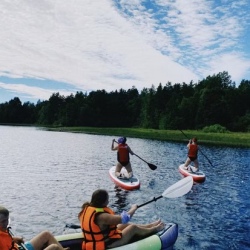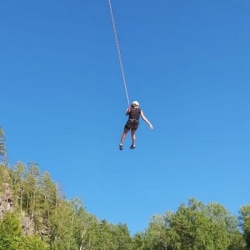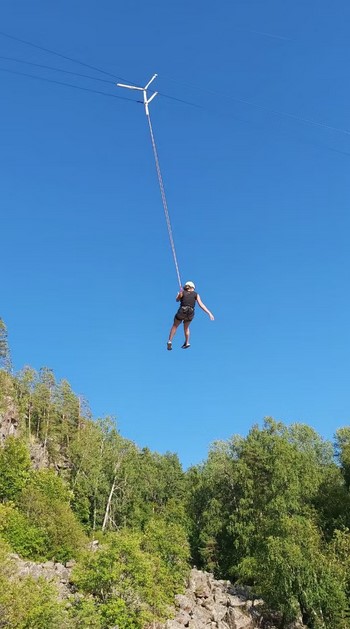 Лодочная переправа к началу тропы, один из самых длинных зиплайнов Карелии, гамак между деревьями и роуп-джампинг с 45-метровой скалы. Прогулка по Ладожским шхерам, баня и ужин из местной рыбы.