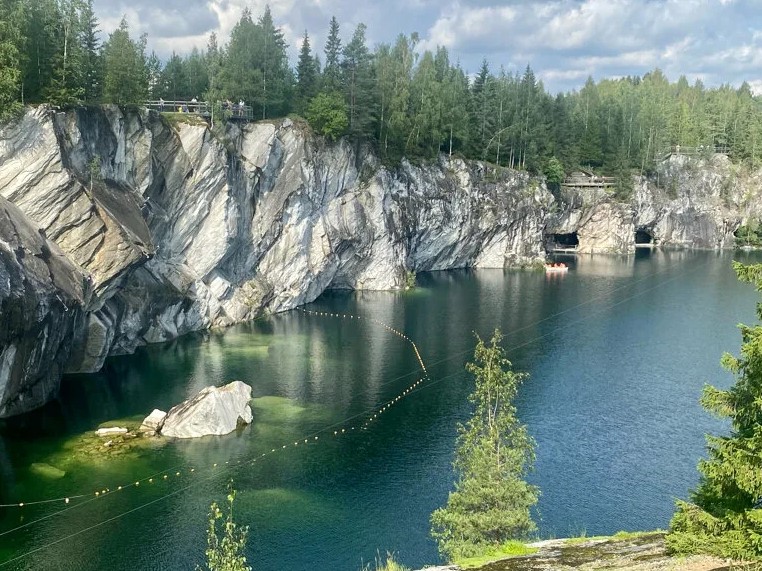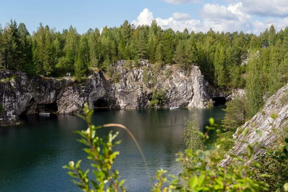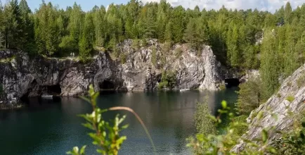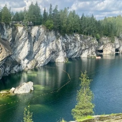 Свободное время в горном парке Рускеала (мраморный каньон, итальянский карьер, подземные штольни), водопады Ахинкоски («А зори здесь тихие»), обед на форелевой ферме и подъём на гору Паасонвуори с круговой панорамой.