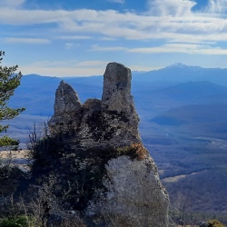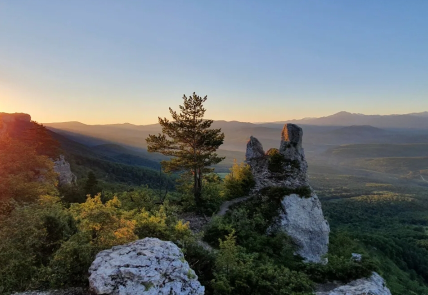 Конный маршрут (шаг, 4–5 км/ч) начинается из старых Черкесских садов. Поднимаемся по ущелью Мишоко к смотровой на хребте Уна-Коз — панорама Лаго-Наки, Оштена, Тхачей и Чугуша. Посещаем гроты Сердце, Медвежий и Сквозной. Финишная точка — скала Чёртов палец, лучшая обзорная точка хребта. Обед — ланч-бокс от поваров. Вечером ужин в гостевом доме.
