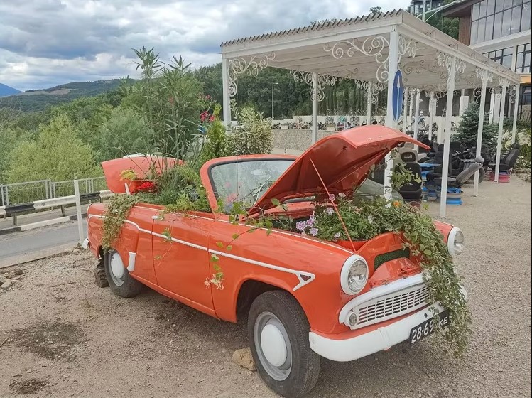 🔹 Обед в стиле СССР в столовой на вершине Демерджи (вид на море).