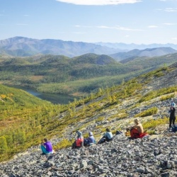 Рассвет на озере Джека Лондона — отдельный спектакль. Солнце зажигает снег на вершинах, туман уходит. Сегодня идём без рюкзаков — тренируемся ходить там, где троп не было и нет. В лексикон добавляются слова «курумник» и «стланик». Обедаем на берегу одного из озёр в полном одиночестве. Подъём на сопку Юнтур (1200 м) — оттуда видно весь хребет Большой Аннгачак и ожерелье малых озёр. На обратном пути — озеро Танцующих Хариусов. Если повезёт, наловим рыбы и грибов к ужину.