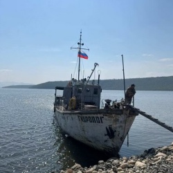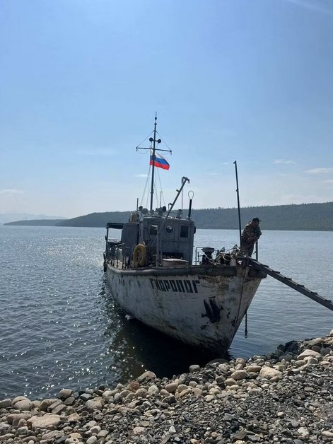 🔹 Водный трансфер – Катер до Синегорья. Вид на Колымскую ГЭС, гористые берега.