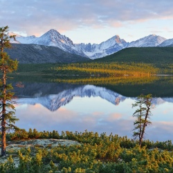 🔹 Раннее утро – Опциональный подъём для встречи рассвета. Вид на хребет Большой Аннгачак.