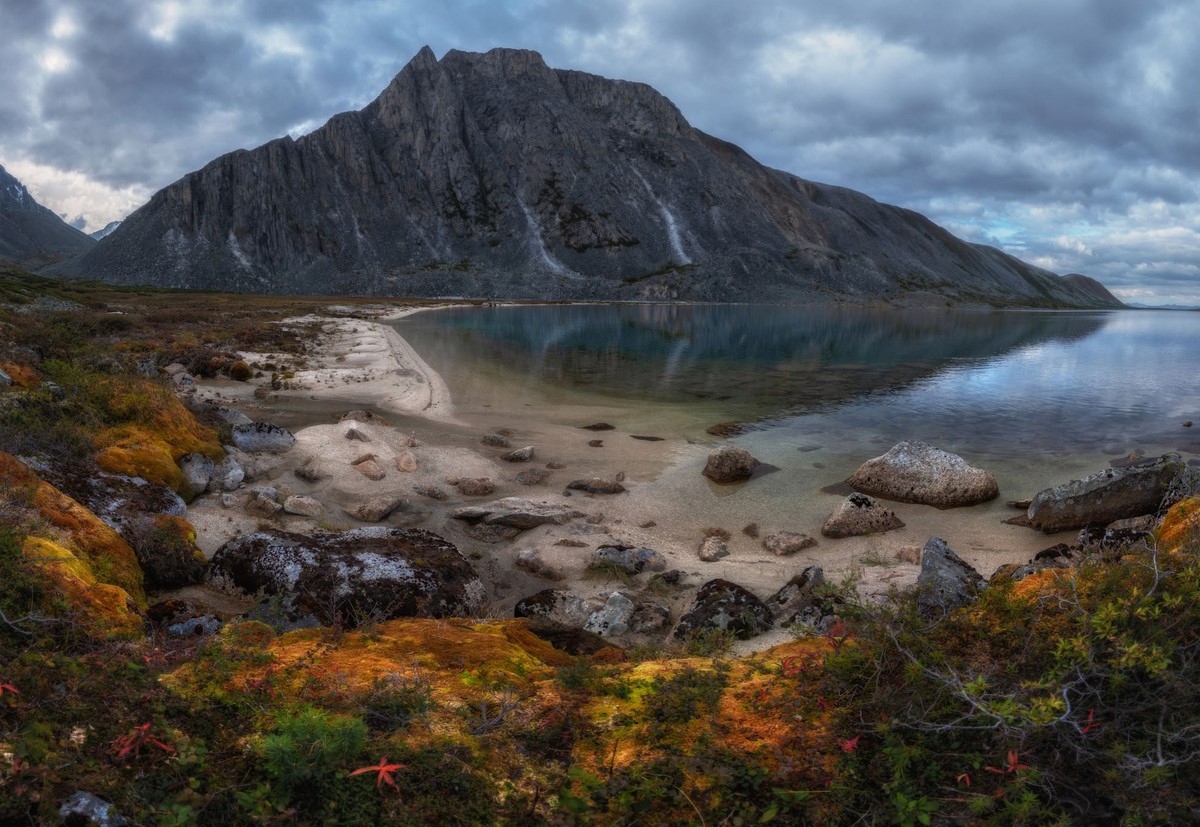 🔹 Лагерь – Коса Биологов. Жёлтый песок, чистая вода, вид на Колымские горы.