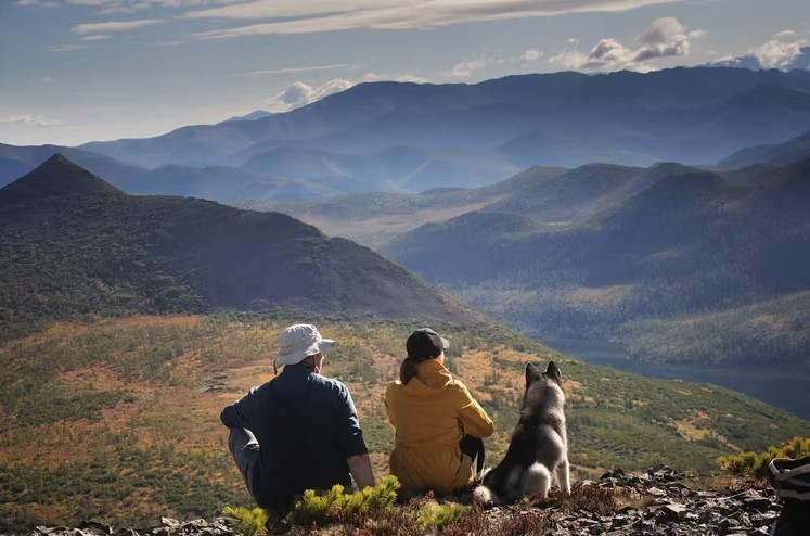 Идеальный баланс. Первая половина дня — подъём на гору без рюкзаков. Сверху открывается полная картина: хребет Черского, россыпь голубых озёр, изгибы Джека Лондона. Вторая половина — жаркая баня, холодное озеро и долгий ужин у костра.