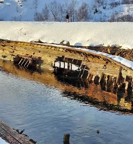 Финальный день – микс мистики и истории. Самые смелые могут испытать невесомость: погрузиться в Баренцево море в специальном костюме и выйти абсолютно сухими. Затем – пляж «Драконьи яйца», усыпанный идеально круглыми камнями, и «гнездо дракона» – место, от которого веет средневековым эпосом. Батарейский водопад, самый северный в европейской части России, обрушивается с высоты прямо в океан. А после – кладбище кораблей: ржавые скелеты рыбацких лодок, похожие на выбросившихся китов. И финальная точка – заброшенная школа на берегу Северного Ледовитого океана. Здесь когда-то звенели детские голоса, а теперь гуляет ветер. Ощущение, что время остановилось. После – трансфер в Мурманск и прощание с Заполярьем.
