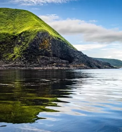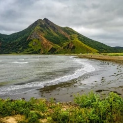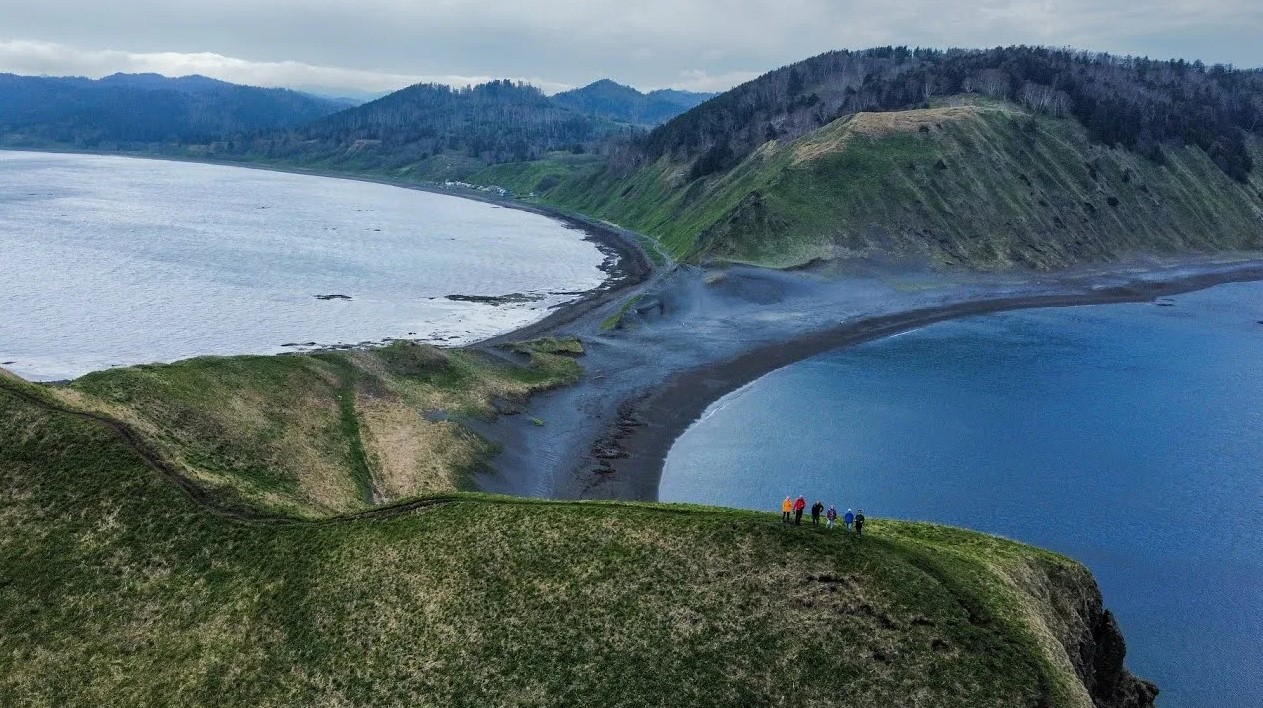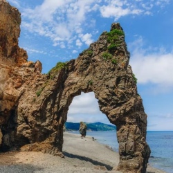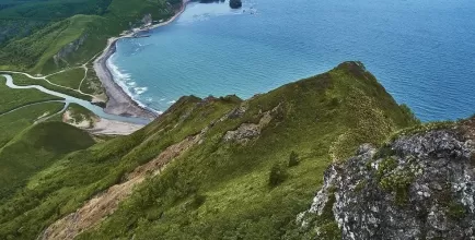 Выезд на юг, к двум знаковым мысам Корсаковского района. Сначала — мыс Птичий: панорамы озер, кекуры и ожившие птичьи базары на останцах. Затем — мыс Великан, визитная карточка острова. Причудливые скалы вдоль берега складываются в фигуры льва, замка или спящего богатыря. Гуляем 2–3 км, смотрим на арки, надводные камни и останцы. В августе–сентябре есть шанс увидеть ход лосося на нерест.