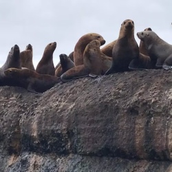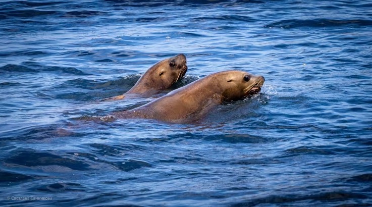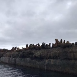 Выход на лодке к волнорезу с лежбищем морских львов (сивучей). Это уникальное природное явление — только три места в мире: Невельск, Камчатка и Сиэтл. Слышим диалоги, делаем кадры с минимального расстояния.