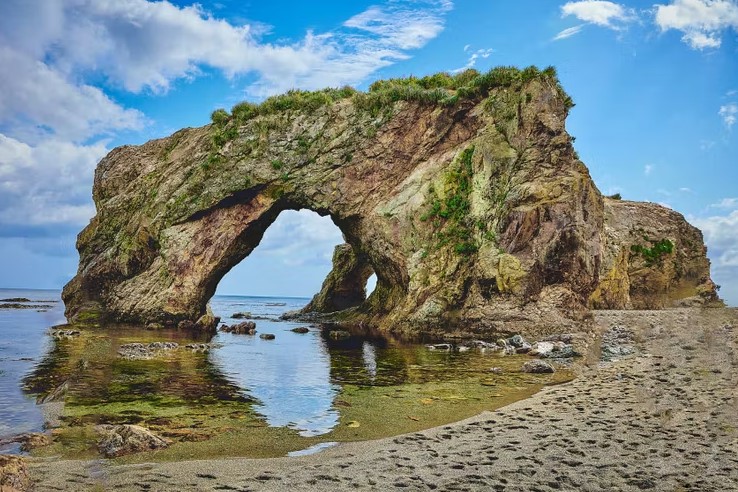 Путь на восток — к бухте Тихой, закрытой от холодных ветров и вошедшей в топ-5 легендарных пляжей России по версии Russiatravel. По дороге — Клоковский водопад: 48 метров, три ступени, видимая часть — 35 метров (верхняя скрыта за деревьями). Остановка у японских ворот Тории храма Хигаси Сираура дзиндзя. Финал дня — крабовый рынок в посёлке Взморье: свежие и вареные деликатесы можно съесть на берегу или увезти с собой.