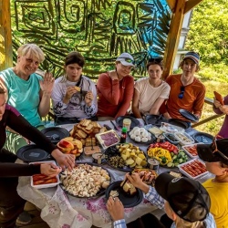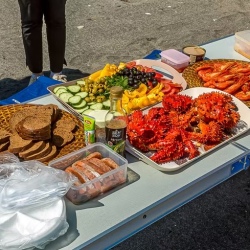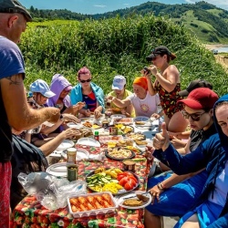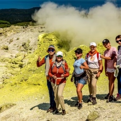 Обед — прямо в сердце вулкана, из местных деликатесов. Морепродукты на фоне геотермальных полей и панорамы острова.