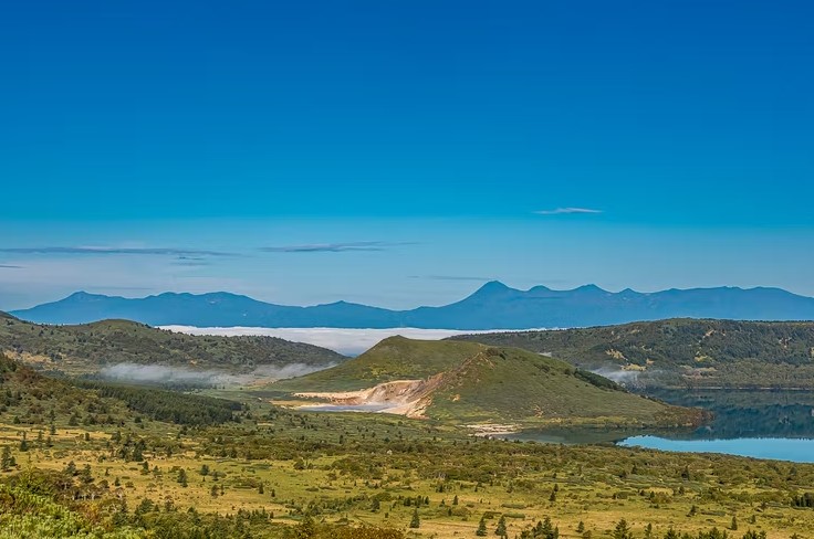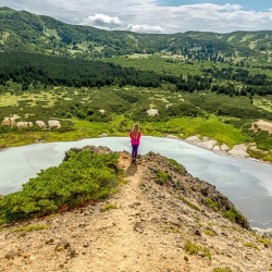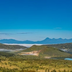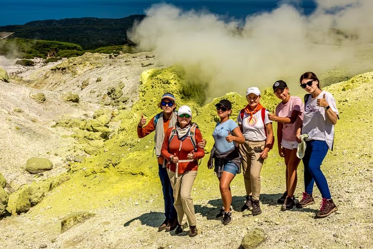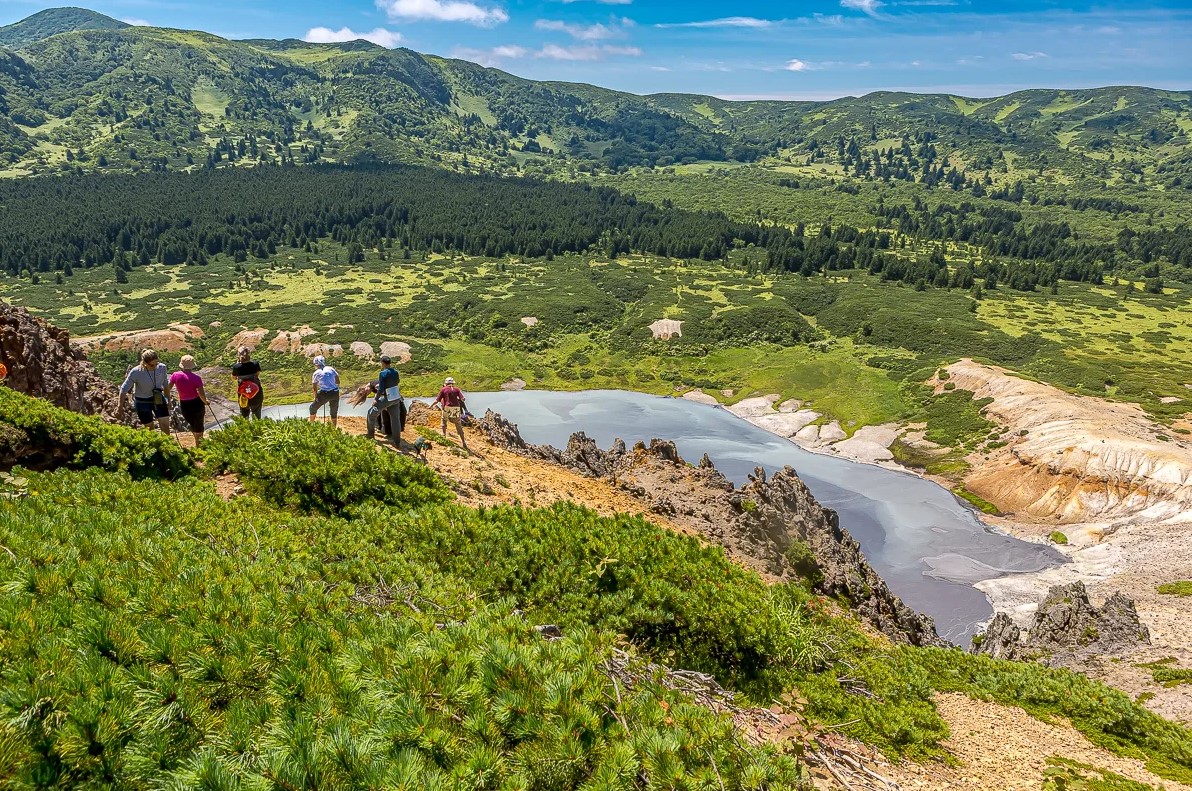 Джип-тур к самому южному вулкану Курильской гряды. Подъем на край кальдеры на автомобилях — без утомительной ходьбы. В ясную погоду с кратера виден японский Хоккайдо.