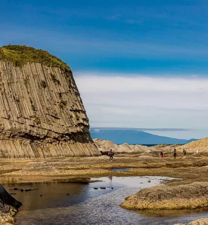 Эксклюзивная экспедиция вдоль всего Головнинского клифа — почти 20 км берегового обрыва. Это возможно только в пик отлива: мы подбираем время по графикам приливов, чтобы у вас было максимум времени на осмотр и съемку.
