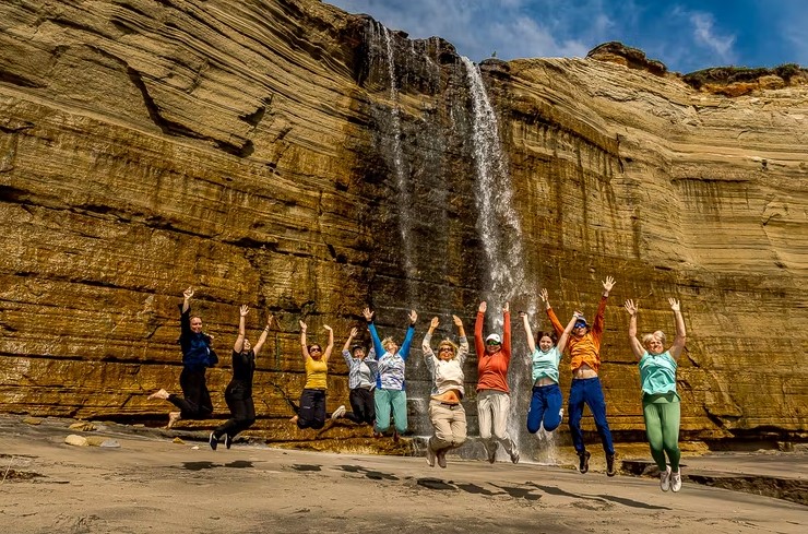 Главное зрелище — десятки водопадов, бьющих прямо из вертикальных скал и падающих в океанский прибой. Дорога проходит по узкой кромке между океаном и стеной. Эмоциональная кульминация всего путешествия.