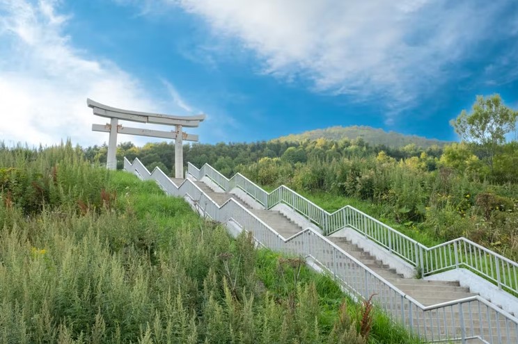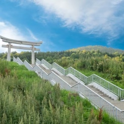 Маршрут на восточное побережье. Первая остановка — село Взморье: осмотр японских ворот Тории (храм Хигаси Сираура дзиндзя) и посещение крабового рынка.