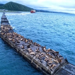 Джип-маршрут через Ловецкий перевал в Невельск. Прогулка по набережной, выход на лодке к волнорезу с лежбищем сивучей (при шторме — наблюдение в бинокли). По пути — осмотр китайского сухогруза, выброшенного на мель.