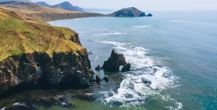 Прибытие в природный парк мыса Великан и мыса Птичий. Прогулка 2–3 км: кекуры, останцы, птичьи колонии, знаменитые скальные арки. В очертаниях скал угадываются лев, замок и голова спящего богатыря. Перекус (чай, пянсе), свободное время для фото. Возвращение в город.