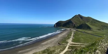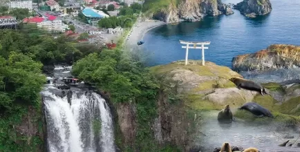 Затем — Клоковский водопад: 48 метров, три ступени, подъем к водопаду с гидом. Далее — бухта Тихая, вошедшая в пятерку легендарных пляжей России. Личное время для прогулки, перекус (чай, сэндвич). Возвращение в Южно-Сахалинск.