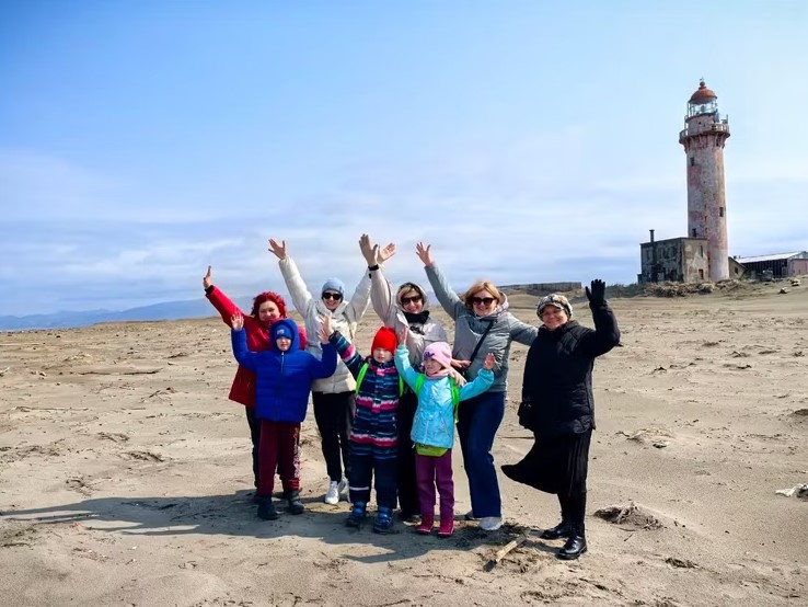 Далее — водопад Салют (свободное время, фото) и мыс Слепиковского. Главное здесь — песчаные барханы и маяк-близнец Ламанона. Перекус с чаем и пянсе на фоне Татарского пролива. Возвращение в Южно-Сахалинск.