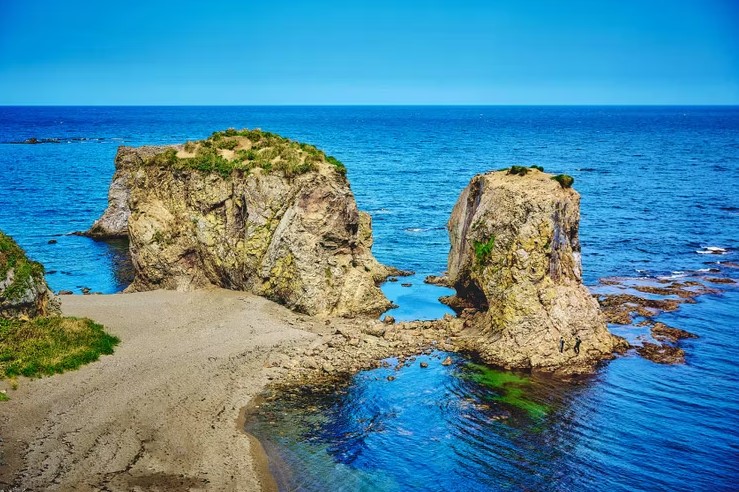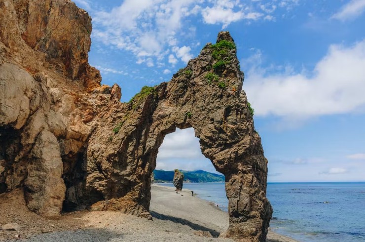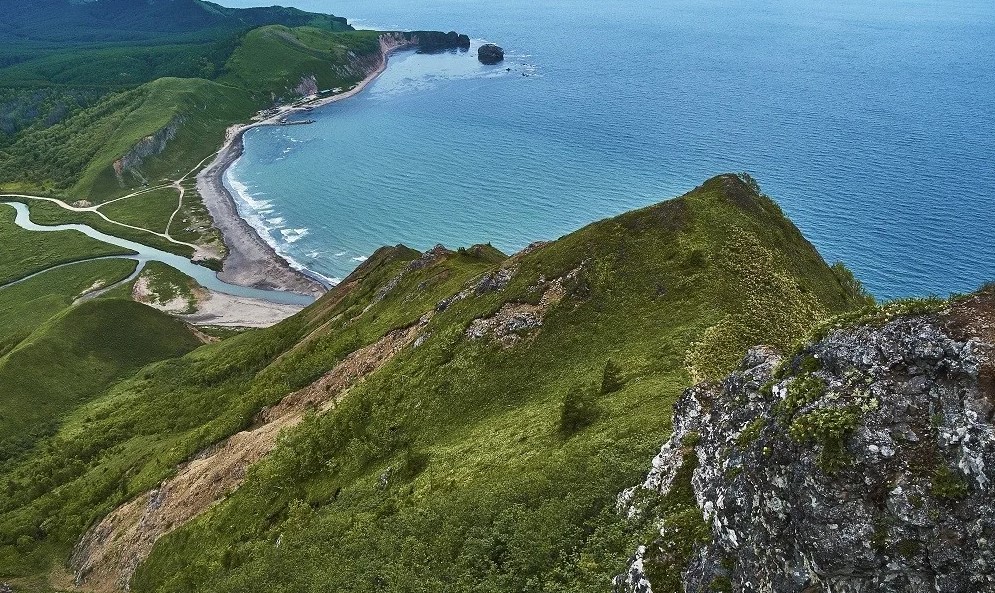 Выезд на юг острова к двум знаковым мысам. Сначала — мыс Птичий: панорамы озёр, скальные кекуры и ожившие птичьи базары. Затем — визитная карточка Сахалина, мыс Великан. Причудливые скалы вдоль берега складываются в фигуры спящего богатыря или льва, выходящего из моря. Гуляем 2–3 км, смотрим на арки, останцы и надводные камни. В августе–сентябре есть шанс увидеть ход лосося.