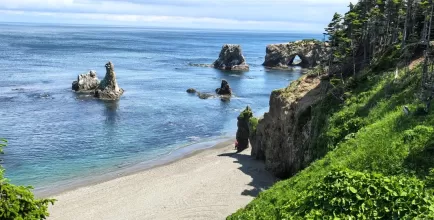 Это путешествие для тех, кто не гонится за количеством флажков на карте, но хочет почувствовать Сахалин кожей. Здесь нет бесконечных переездов ради одного фото — каждый маршрут продуман так, чтобы у вас осталось время постоять у воды и услышать тишину. За пять дней вы соберете главные контрасты острова: от прибоя Охотского моря у скальных арок до вулканического песка мыса Евстафия и дикого восточного побережья, где на камнях отдыхают нерпы. Вы попробуете свежайшие деликатесы прямо на берегу, пройдете под сводами легендарного маяка и увидите воду цвета лазури там, где раньше был угольный разрез. Комфортная логистика и работа гидов позволяют сосредоточиться на главном — на острове.