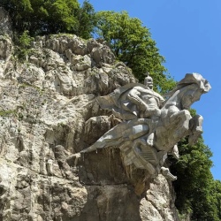 г Монумент «Уастрыджи» (покровитель мужчин, 28-ми тонный всадник на коне висящий на скале)