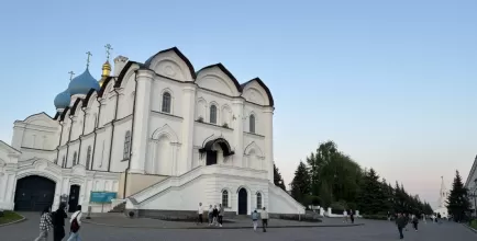 Первая часть — Казанский Кремль. Экскурсия перенесет во времена Ивана Грозного и царицы Сююмбике. Осмотр белокаменных стен, мечети Кул-Шариф и Благовещенского собора (при возможности входа), усыпальниц ханов и легендарной башни Сююмбике.