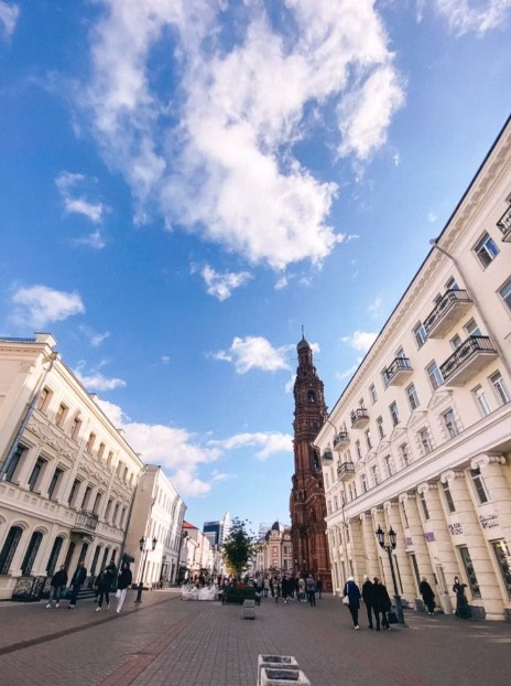 Продолжение — улица Баумана (Казанский Арбат) и подъем на колокольню XIX века: панорамный вид на город.