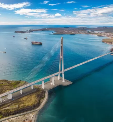 Виды на Золотой и Русский мосты, кампус ДВФУ