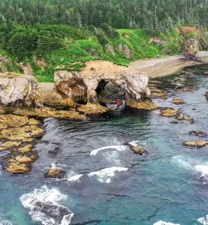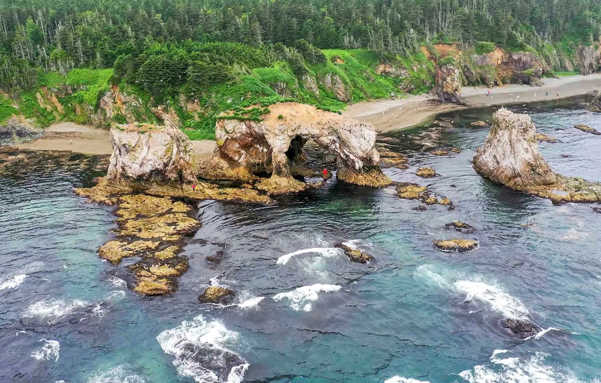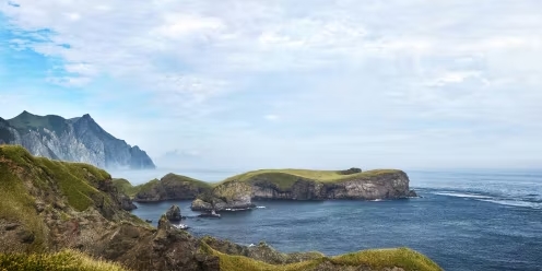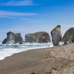 Береговая линия юга острова — калейдоскоп контрастов: обрывистые скалы с водопадами, висящие над водой деревья, заповедные бухты. Увидим 15-метровый водопад Девичьи Слезы, проедем безлюдные бухты и пообедаем у скалы Платок Янкито. Поднимемся на смотровую, чтобы охватить взглядом разнообразие Итурупа. Вечером — обратный перелет на Сахалин.
