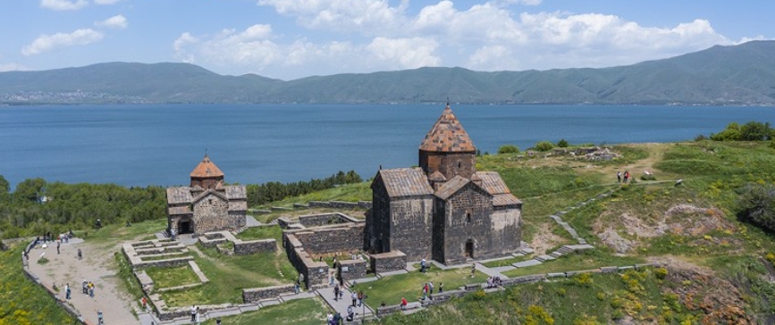 🔹 Возвращение к озеру Севан, посещение монастыря Севанаванк (IX в.) на полуострове – панорама озера