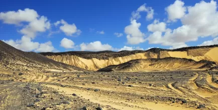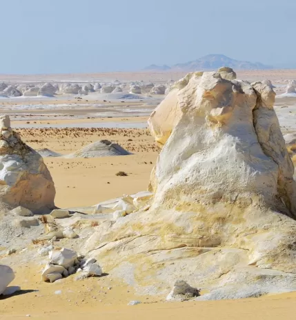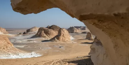 Пересадка на внедорожник. Начало сафари по Белой и Черной пустыням. Осмотр меловых скульптур Белой пустыни, вулканических ландшафтов Черной.