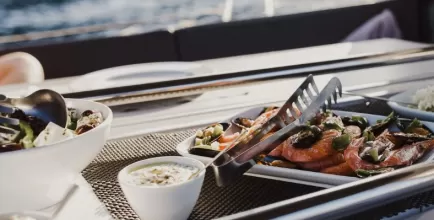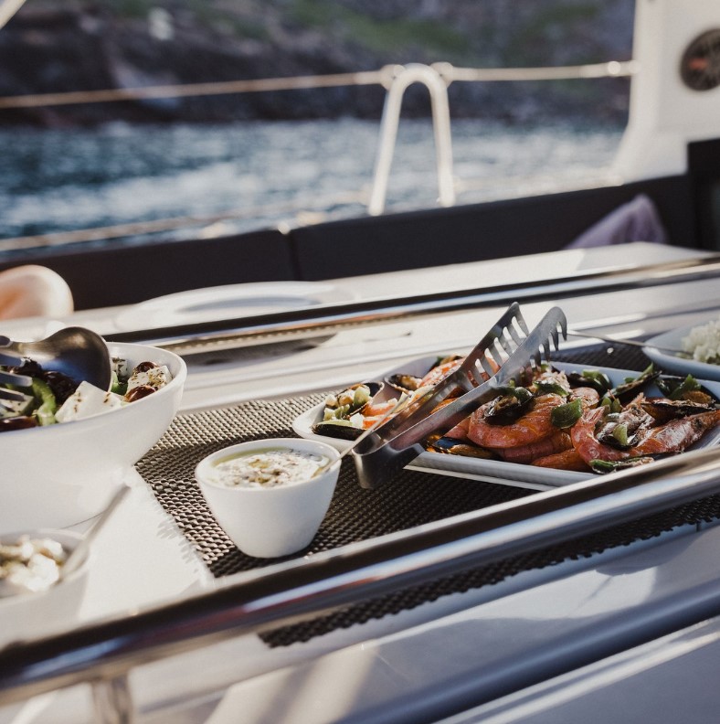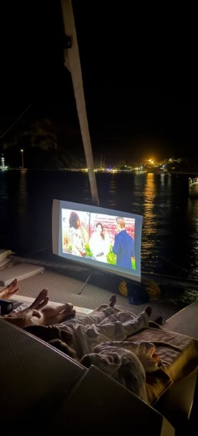 Вечером — ужин на борту: мясо на гриле, вино, просмотр фильма под открытым небом и звезды.