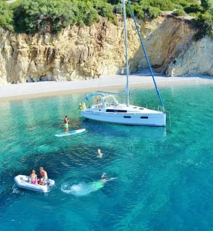 После обеда (15:00–16:00) — финальный переход в Лефкас Марину. Сбор вещей.