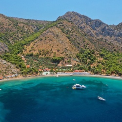 Утро — переход к острову Докос. Нетронутое место без инфраструктуры, известное своей историей. Купание в спокойной бухте, обед на борту с видом на море.