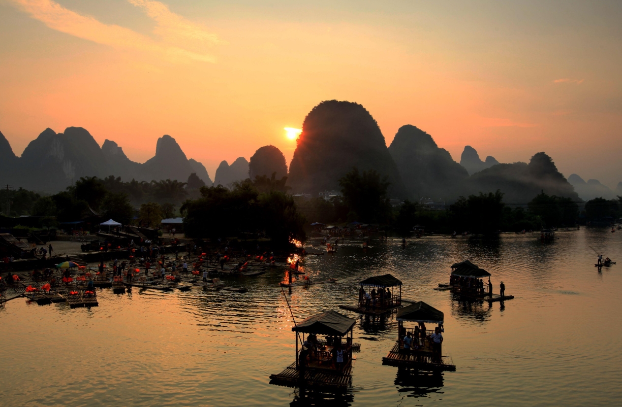 Исследование священной реки Ли на бамбуковых плотах среди карстовых гор.