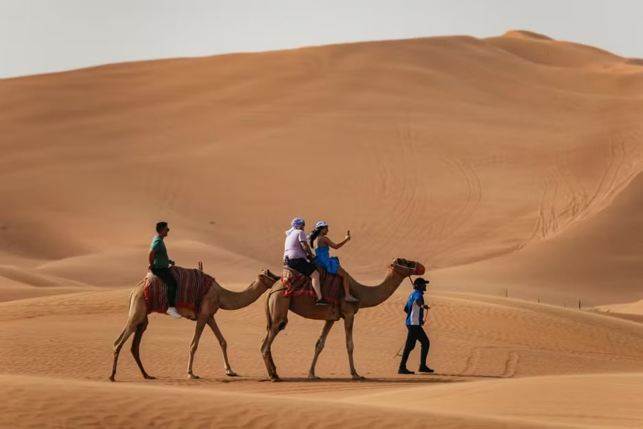 🔹 Джип-сафари с активностями: катание на верблюдах, спуск с дюн на сандборде.