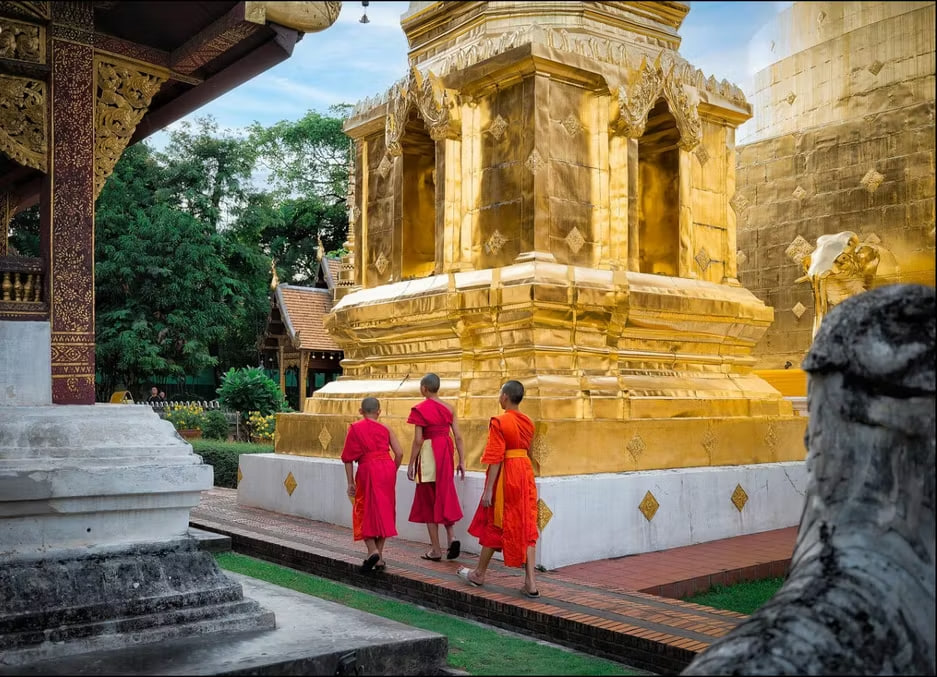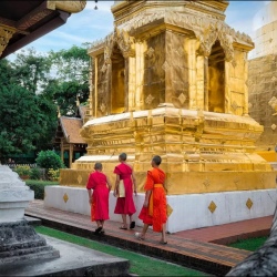Вы начнёте с мистического севера Таиланда: Белый храм, сияющий зеркальной мозаикой, Синий храм с его тигриной легендой и древний Чиангмай, где время течёт сквозь стены королевства Ланна. Затем — духовный Лаос: рассветная церемония монахов в Луанг Прабанге, бирюзовые каскады Куанг Си и тысячи статуй Будды в пещерах Пак У. И финал — величие Камбоджи: два дня в храмовом комплексе Ангкор-Ват, где джунгли переплелись с камнем, а закаты над древними стенами становятся личным откровением.