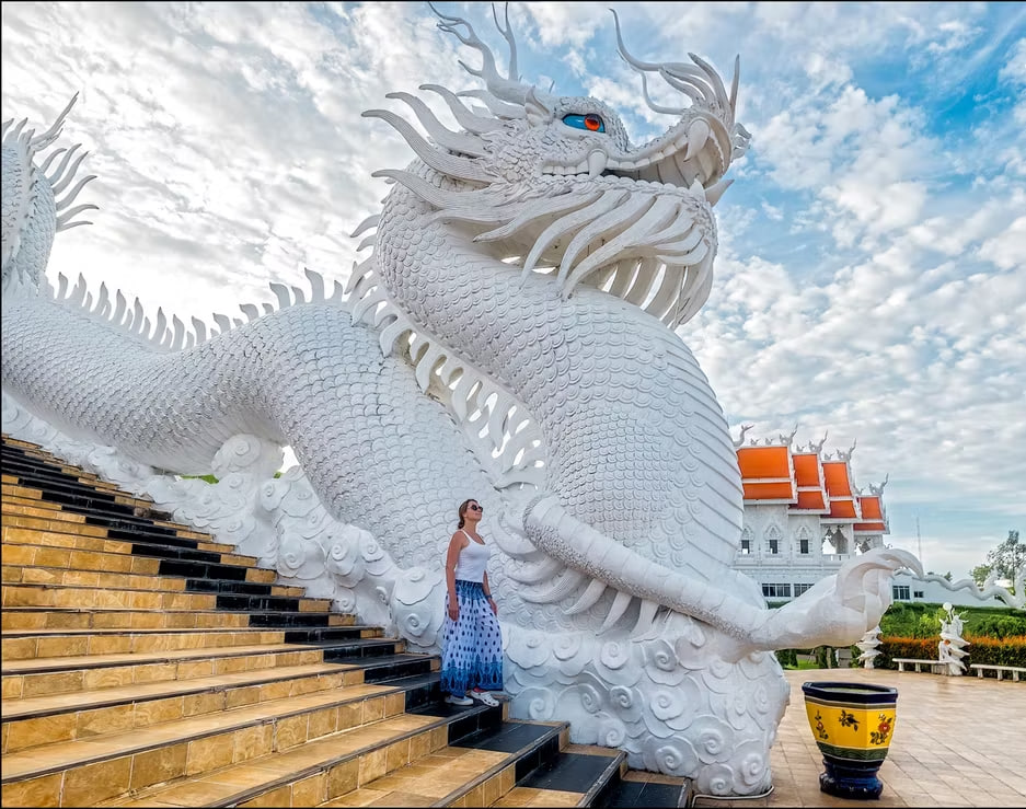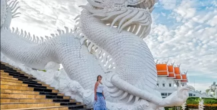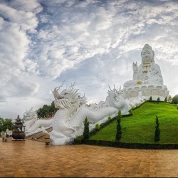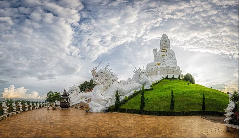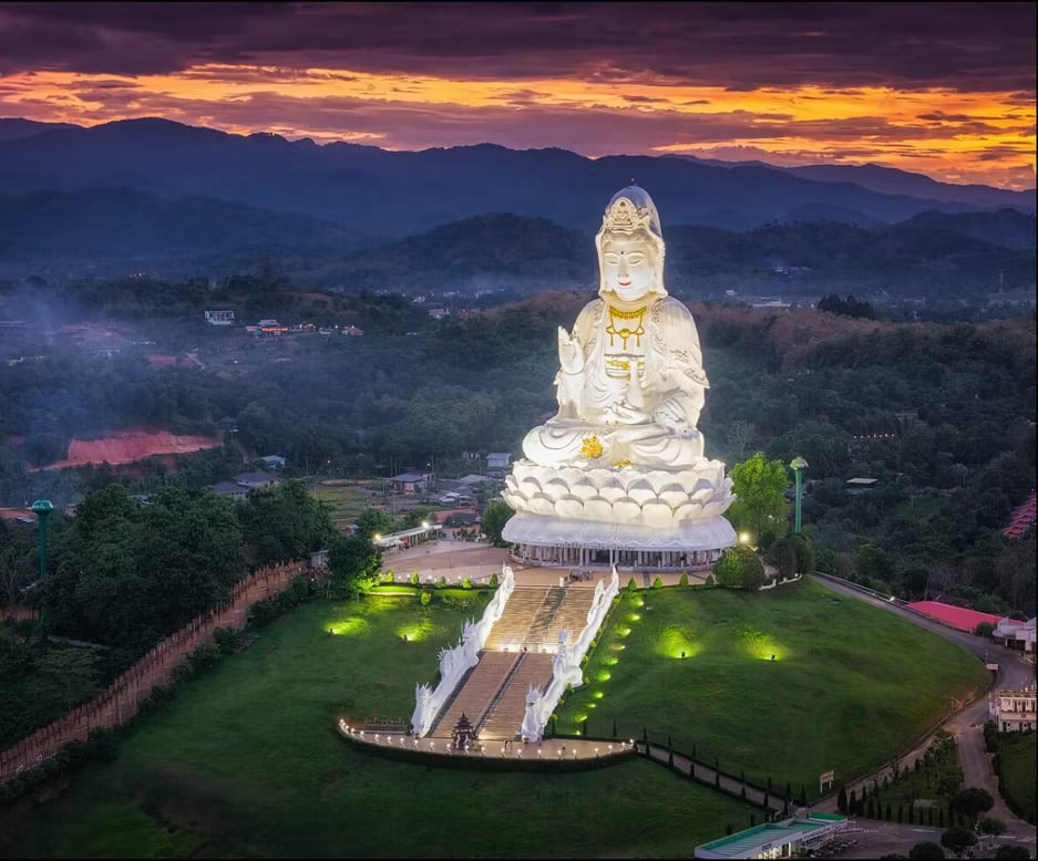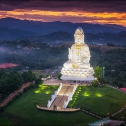 🌇 Закатная экскурсия в храмовый комплекс Wat Huay Pla Kang: осмотр тайского храма-убосота, девятиярусной пагоды с возможностью подъёма на смотровую площадку и величественной белоснежной статуи богини милосердия Гуаньинь.