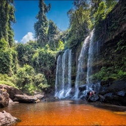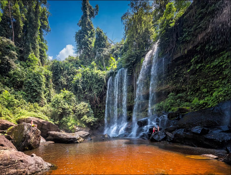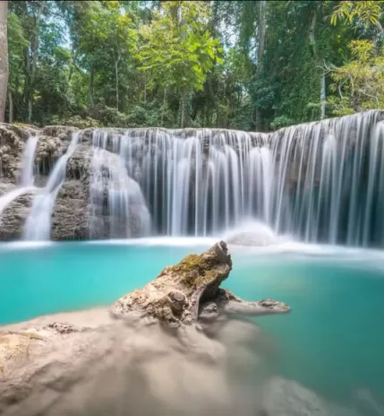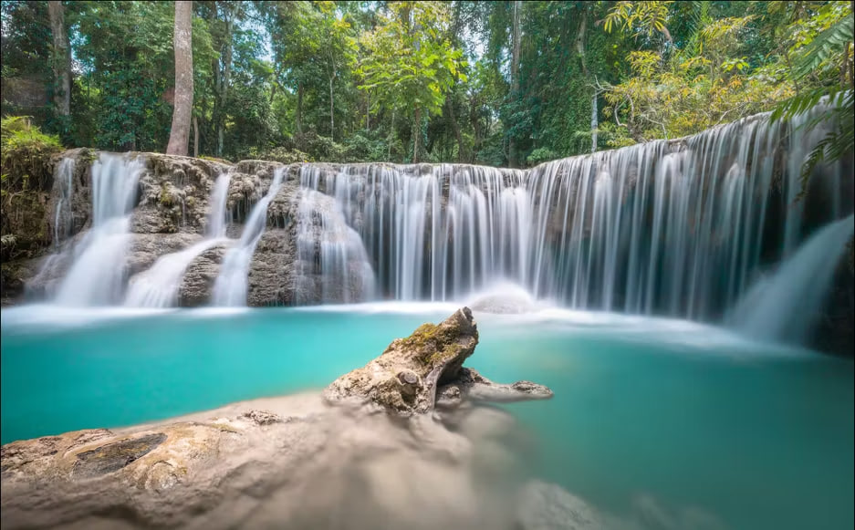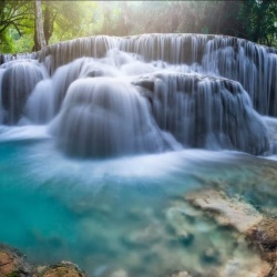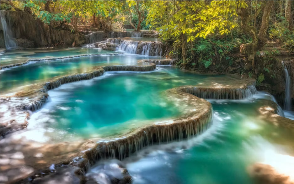 💦 Утро: посещение водопада Куанг Си (Kuang Si) на территории национального парка. Высота главного каскада — 54 метра. Подъём по тропе через джунгли, купание в бирюзовых бассейнах между каскадами.