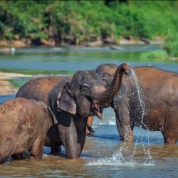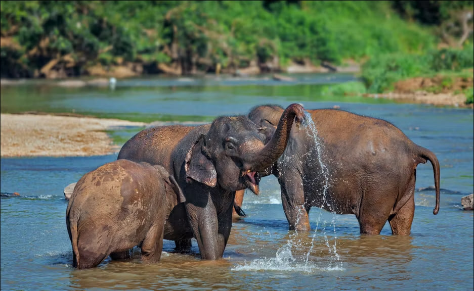 🐘 Визит в слоновий питомник: часовая прогулка на слонах по джунглям и купание вместе с ними в Меконге.