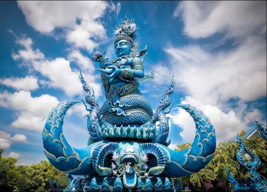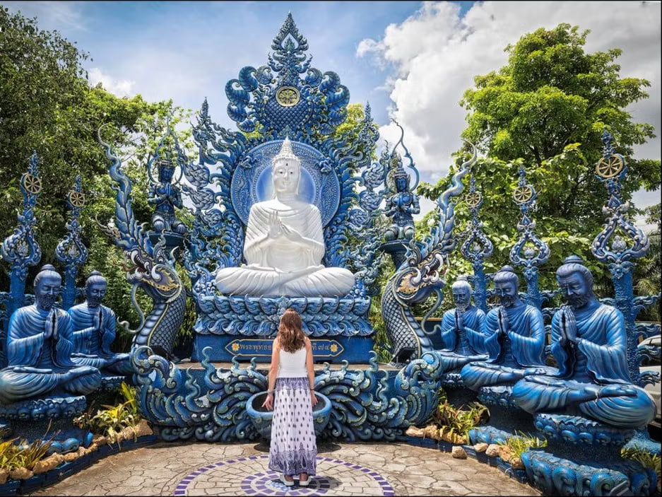 🔵 День: визит в Храм танцующего тигра (Синий храм). Легенда о тиграх среди старых руин, современное великолепие храма, открытого в 2016 году.