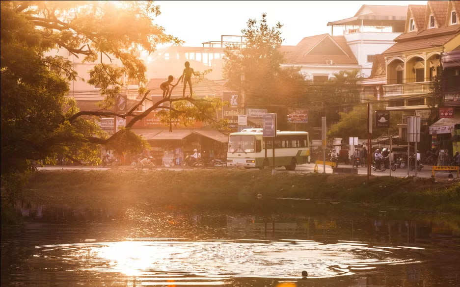 🏚️ Посещение плавучих деревень беженцев из Вьетнама. Около 500 тысяч человек живут в домах на воде среди крокодилов и змей. Удивительный быт: рыболовство, сотовый связь, телевидение, храмы, школа, магазины и кафе — всё на воде.